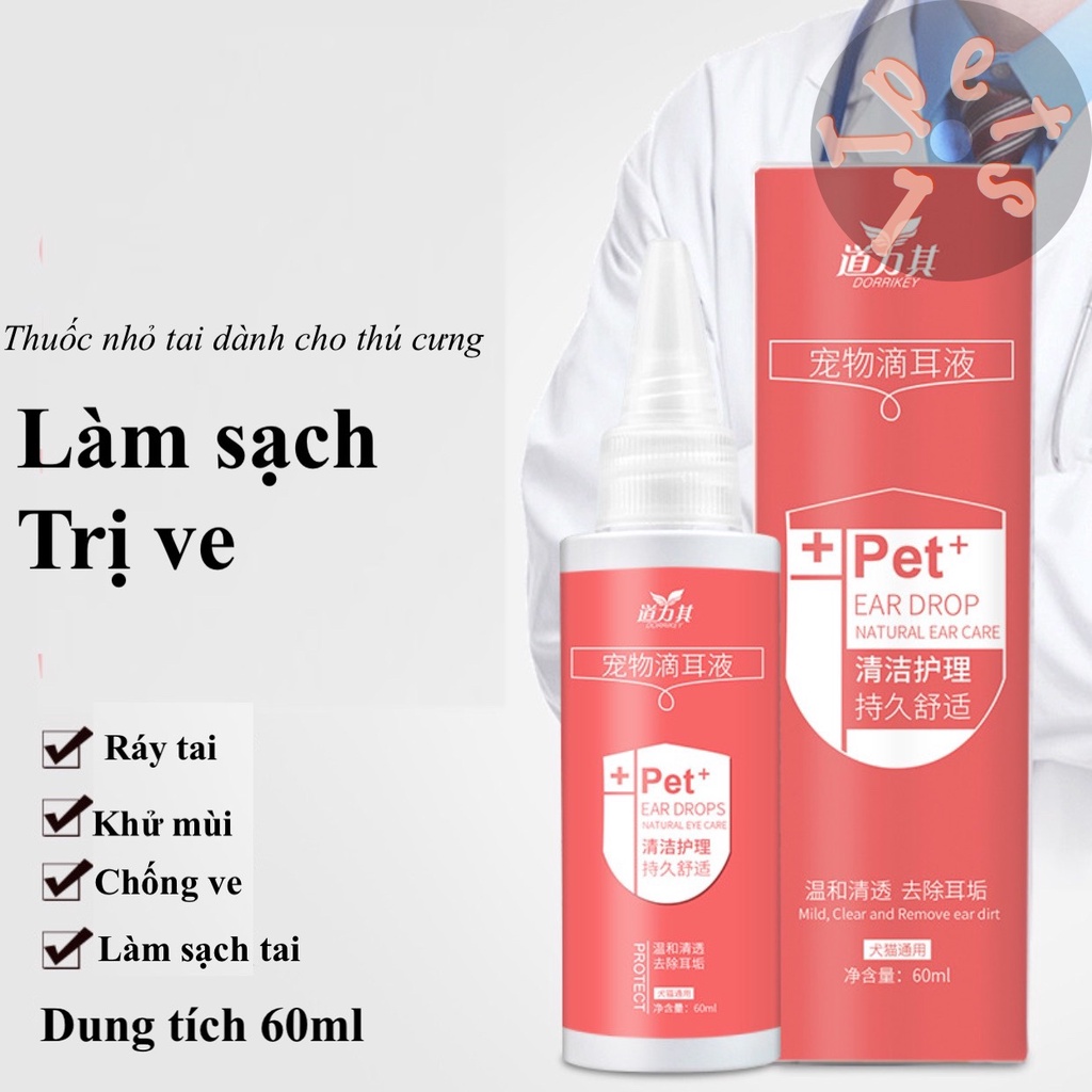 Dung dịch nhỏ tai vệ sinh điều trị viêm thối tai chó mèo Daoliqi 60ml free ship
